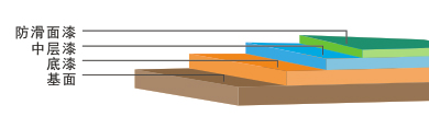 防滑地坪涂装,强韧耐磨抗冲击适合车辆通行。耐水、耐油污、耐酸碱等化学腐蚀;美观止滑、降低噪音、色彩丰富。施工工期短、五污染。 适用范围 室内地面、工厂车间地面、操作台、医院、停车场、人行道、过街天桥、运动场地、跑道、浴室和游泳池的地面以及购物中心和老人活动中心等,特别是使用有水、油的地面,以及一切需要防滑要求的地面。 性能特点 1、选用无溶剂环氧树脂加优质固化剂制成; 2、表面柚面效果,花纹可大可小; 3、耐酸、碱、盐以及油类腐蚀; 4、耐磨、耐压、耐冲击。 施工工艺 1、基面处理; 2、涂刷封闭底漆; 3、施工中层漆; 4、施工防滑面漆。